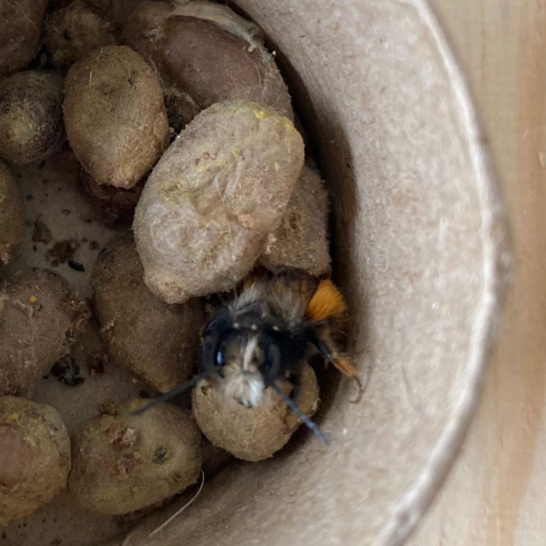 Les cocons éclosent et les abeilles peuvent revenir naturellement s’installer dans le Dorlotoir. Durant le printemps et l’été, elles font leur nid dans le Dorlotoir : vous les observez grâce aux tubes transparents. A la fin de l’été, vous nous renvoyez les tubes en carton contenant des nids. Nous mettons vos cocons à l’abri des parasites et des prédateurs. Au début du printemps suivant, vous recevez une nouvelle génération de cocons pour démarrer une nouvelle saison.